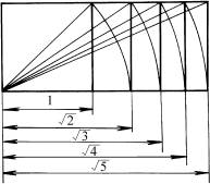 例 以正方形一边与其对角线所形成的矩形比例关系为基础,逐渐以其新生矩形的对角线与正方形一边所形成的比例